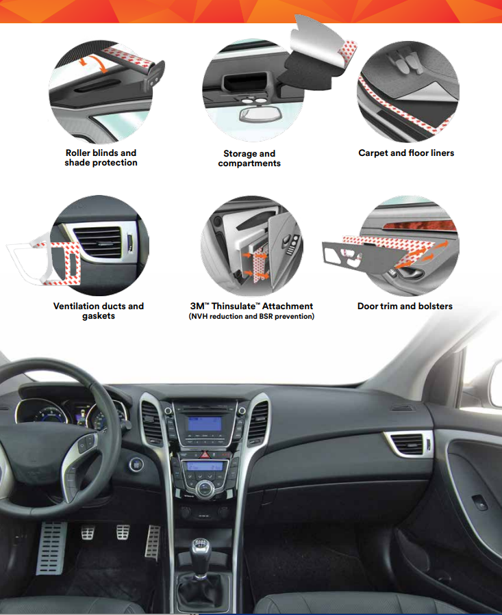 增加政府对乘用车等室内空气质量的法规,严格的汽车OEM标准正在推动全球对新一代低 VOC(挥发性有机化合物)薄附着溶液。 随着100多年,凭借整个汽车价值链的全球经验和合作伙伴关系,3M让您进入具有高性能、低VOC胶带解决方案组合的驾驶员座椅,满足 苛刻的全球要求。带有丙烯酸粘合剂的3M™ 低VOC胶带旨在扩大您的设计自由度, 这样您就可以专注于内饰的贴合度和光洁度,同时满足车辆室内空气质量 (VIAQ) 标准。 需要更多创新的新材料来减轻重量,增加 乘客舒适度或创造更安静的客舱体验应该推动您的设计思维,不是您的组件或连接方法的排放量。