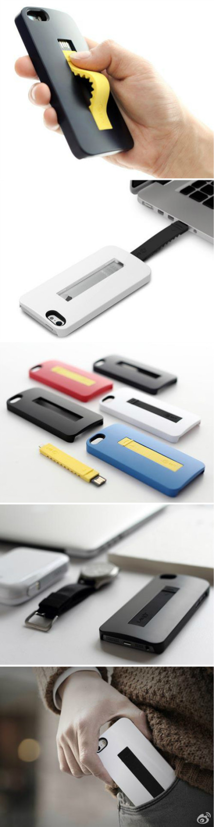 Plus X Design 和 Youngin Koh 为iPhone 5S设计的手机壳,它将USB充电线集合到了手机壳里面,需要充电或者传输数据时,将其单独取下即可使用,有多个颜色可供选择,是2014年IF设计奖作品。